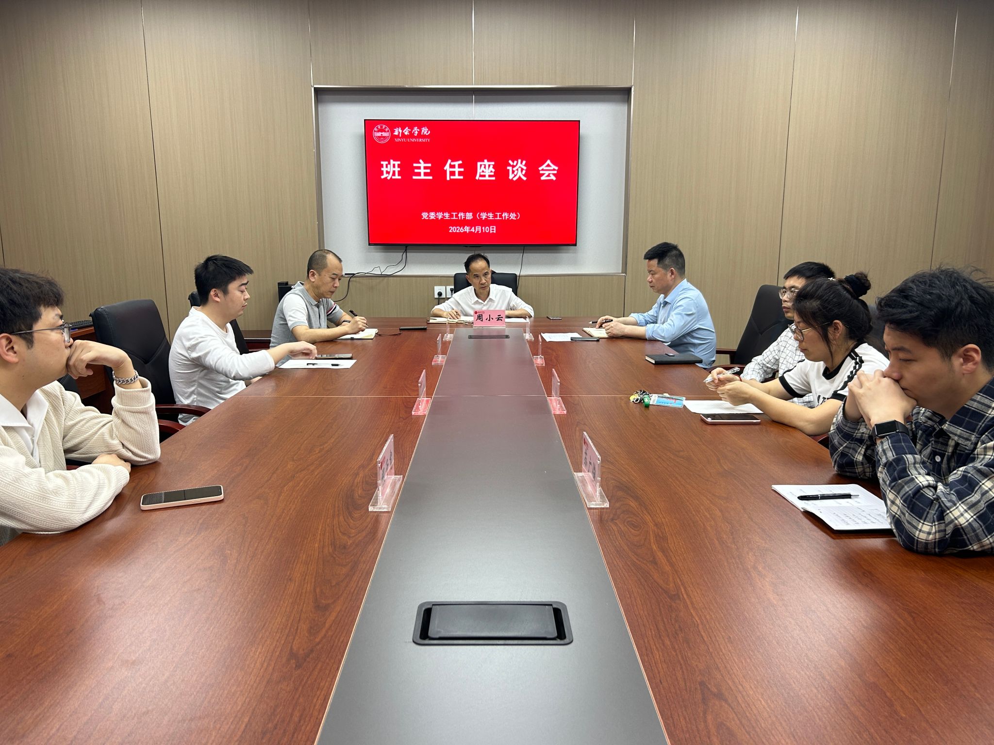 会上,周小云对班主任下沉到学生管理一线给予肯定,对大家的辛勤付出表示感谢,并与班主任代表围绕学生管理、学风建设、心理健康、宿舍管理、就业指导等方面展开深入交流。